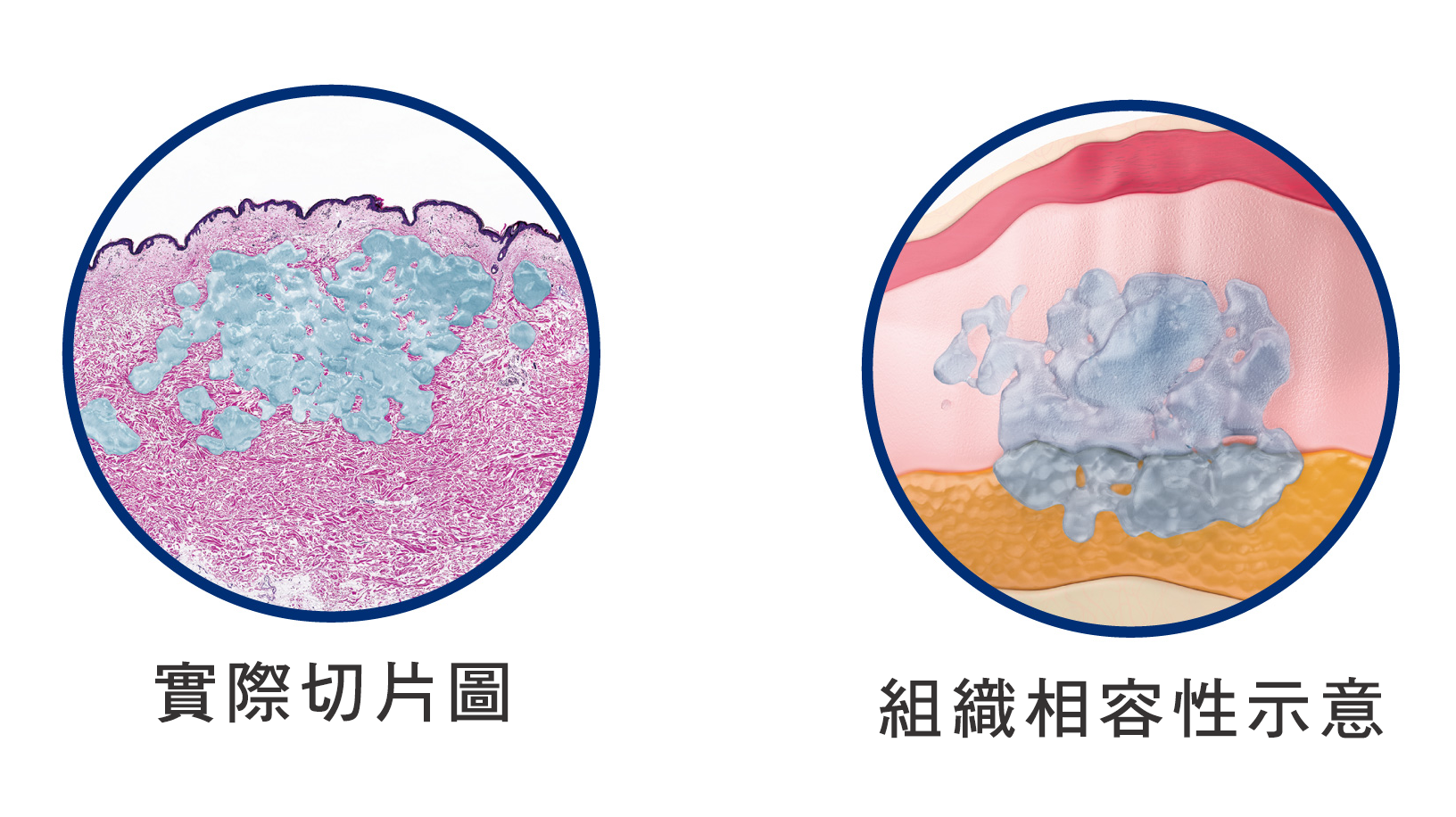 - 不慎注入血管內可能會發生血管損傷,或者發生與任何植入式注射產品有關的血管壓迫的結果。再植入的區域或受影響的血管區域可能會有變白、變色、壞死或潰瘍的情形。